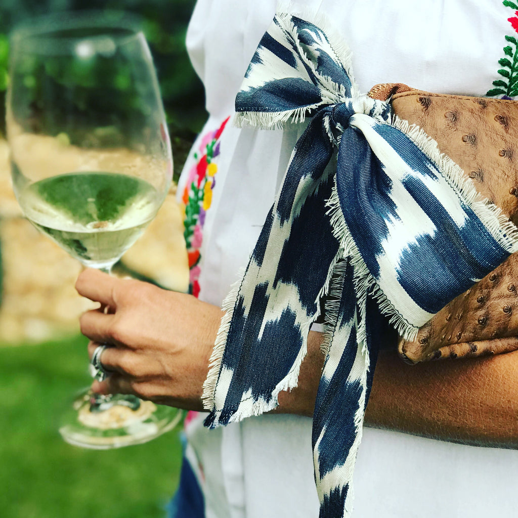 The result of a collaboration with Delinah Simmons, the first of our Vixen scarf line is a total head turner. Turkish silk with our signature fringe edge gives an edgy twist to this scrumptious scarf. 42” long you can tie to your purse or wrist for awesome arm candy.